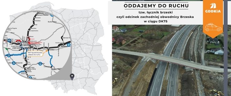 GDDKiA otworzyła 3-kilometrowy odcinek zachodniej obwodnicy Brzeska, który łączy rondo w Jasieniu na DK94 z nowym rondem w Okocimiu na DK75. Droga usprawni przejazd w kierunku Sądecczyzny i odciąży centrum miasta. Jest to równocześnie pierwsza część nowej sądeczanki. Decyzję środowiskową dla pozostałego, 47-kilometrowego odcinka tej drogi GDDKiA uzyskała w grudniu 2024 r.